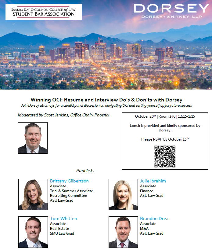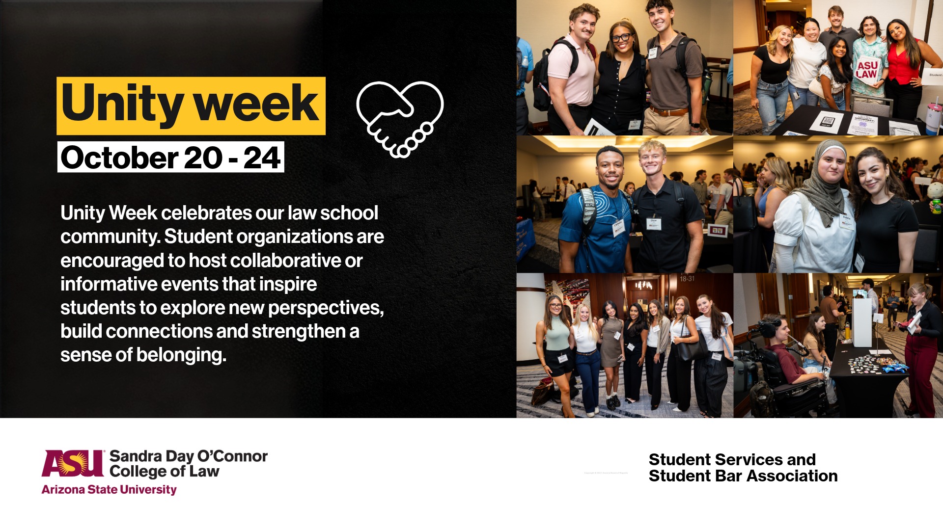 Calendar of Events Categories Admissions Alumni Event ASU Law Leadership Bar Exam Success Career Services Centers & Programs CLEs & Conferences Deans' Events Development External Event Faculty Event Financial Aid General Holiday Information Technology Invite Only Journals Law Library Los Angeles Presentations and Panels Pro Bono Organizations Staff Event Student Life Student Organizations Student Services Washington D.C. Audience External Public Alumni Students Faculty Staff Invite Only Date Date Today Tomorrow This Weekend Date Start date Start date Search Reset Filters Applied Filters None View 9 Oct ACS: The First Amendment Under Siege: The State of the Union with Joe Walsh Thu, Oct 9, 2025, 12:15 am – 1:30 pm (AZ) 544 9 Oct Discussion & Criminal Sentencing Observation with Judge Tuchi Thu, Oct 9, 2025, 1:00 pm – 2:45 pm (AZ) Offsite 10 Oct Western Tri-State Prosecution Team Career Fair Fri, Oct 10, 2025, 10:00 am – 1:00 pm (AZ) BCLS, Snell & Wilmer Plaza 13 Oct Shemini Atzeret/Simchat Torah Mon, Oct 13, 2025, 12:00 am – 11:59 pm (MST) 13 Oct Indigenous People’s Day Mon, Oct 13, 2025, 12:00 am – 11:59 pm (MST) 13 Oct Fall Break Mon, Oct 13, 2025, 12:00 am – 11:59 pm (MST) 14 Oct Fall Break Tue, Oct 14, 2025, 12:00 am – 11:59 pm (MST) 14 Oct Shemini Atzeret/Simchat Torah Tue, Oct 14, 2025, 12:00 am – 11:59 pm (MST) 14 Oct ASU Law D.C. Fall Reception Tue, Oct 14, 2025, 5:30 pm – 8:00 pm (EST) ASU DC 15 Oct Shemini Atzeret/Simchat Torah Wed, Oct 15, 2025, 12:00 am – 11:59 pm (MST) 15 Oct Fall Break Wed, Oct 15, 2025, 12:00 am – 11:59 pm (MST) 16 Oct TechTainment™ 2025 Thu, Oct 16, 2025, 9:00 am – 6:30 pm (AZ) ASU California Center 16 Oct Fall Break Thu, Oct 16, 2025, 12:00 am – 11:59 pm (MST) 16 Oct Grounds for Justice with the Office of the Legal Defender Thu, Oct 16, 2025, 12:15 pm – 1:15 pm (AZ) Valley Coffee Company 17 Oct Fall Break Fri, Oct 17, 2025, 12:00 am – 11:59 pm (MST) 17 Oct Join GPILSA for a Recess! Fri, Oct 17, 2025, 12:00 pm – 1:30 pm (AZ) BCLS 394A 20 Oct Unity Week Mon, Oct 20, 2025, 12:00 am – 11:59 pm (AZ) BCLS 20 Oct FCBA TMT Law & Policy Pipeline Program Mon, Oct 20, 2025, 9:36 am – 7:36 pm (AZ) https://www.fcba.org/tmt-law-policy-pipeline-program/ 20 Oct Diwali / Deepavali Mon, Oct 20, 2025, 12:00 am – 11:59 pm (MST) 20 Oct Jenckes Closing Argument Competition Info session Mon, Oct 20, 2025, 12:00 pm – 1:15 pm (AZ) BCLS 442 20 Oct Winning OCI: Resume and Interview Do's & Don't with Dorsey Mon, Oct 20, 2025, 12:15 pm – 1:15 pm (AZ) BCLS 240 20 Oct Alternative Dispute Resolution (ADR) Week (Day 1) Mon, Oct 20, 2025, 12:15 pm – 1:15 pm (AZ) Virtual 21 Oct Unity Week Tue, Oct 21, 2025, 12:00 am – 11:59 pm (AZ) BCLS 21 Oct Judicial Panel Tue, Oct 21, 2025, 12:15 pm – 1:15 pm (AZ) BCLS 550 21 Oct Domestic Violence Awareness Month Panel with The Gender Violence Project Tue, Oct 21, 2025, 12:15 pm – 1:15 pm (AZ) BCLS 240 Prev Next